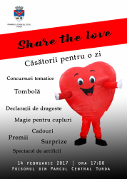 Ziua îndrăgostiților va fi sărbătorită într-un mod inedit anul acesta! Primăria municipiului Turda îi invită pe toți îndrăgostiții la petrecerea organizată în foișorul din Parcul Central, marți 14 februarie, începând cu ora 17.00.