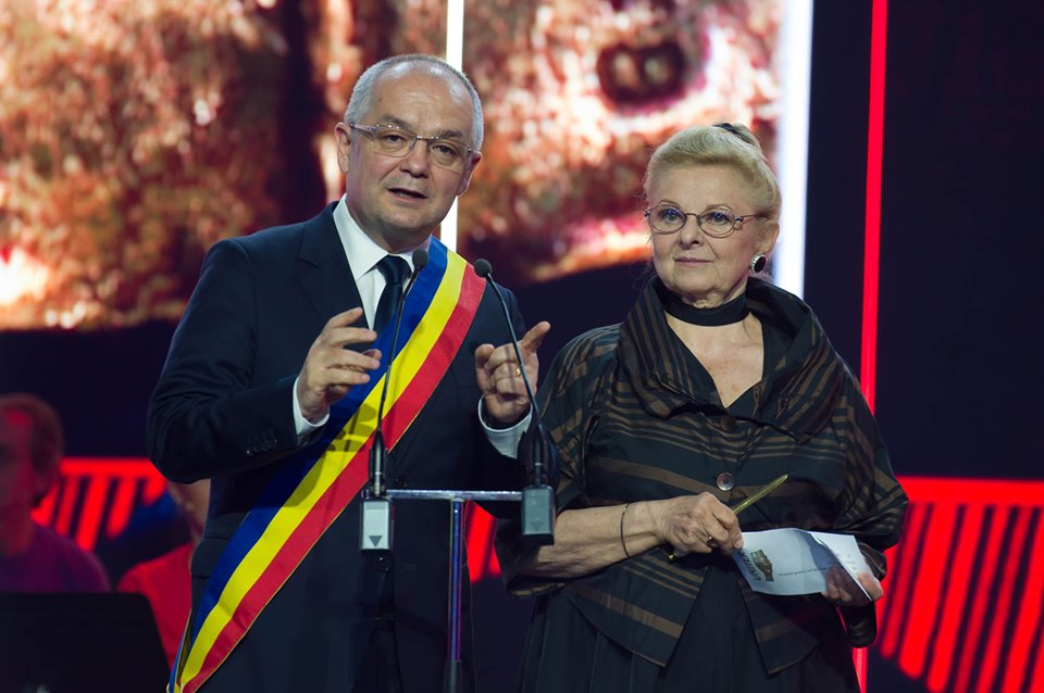 Primarul Emil Boc a urcat pe scena UNITER alături de actrița Mariana Mihuț pentru a oferi premiul pentru cel mai bun actor în rol principal, ocazie cu care a adresat publicului câteva cuvinte.